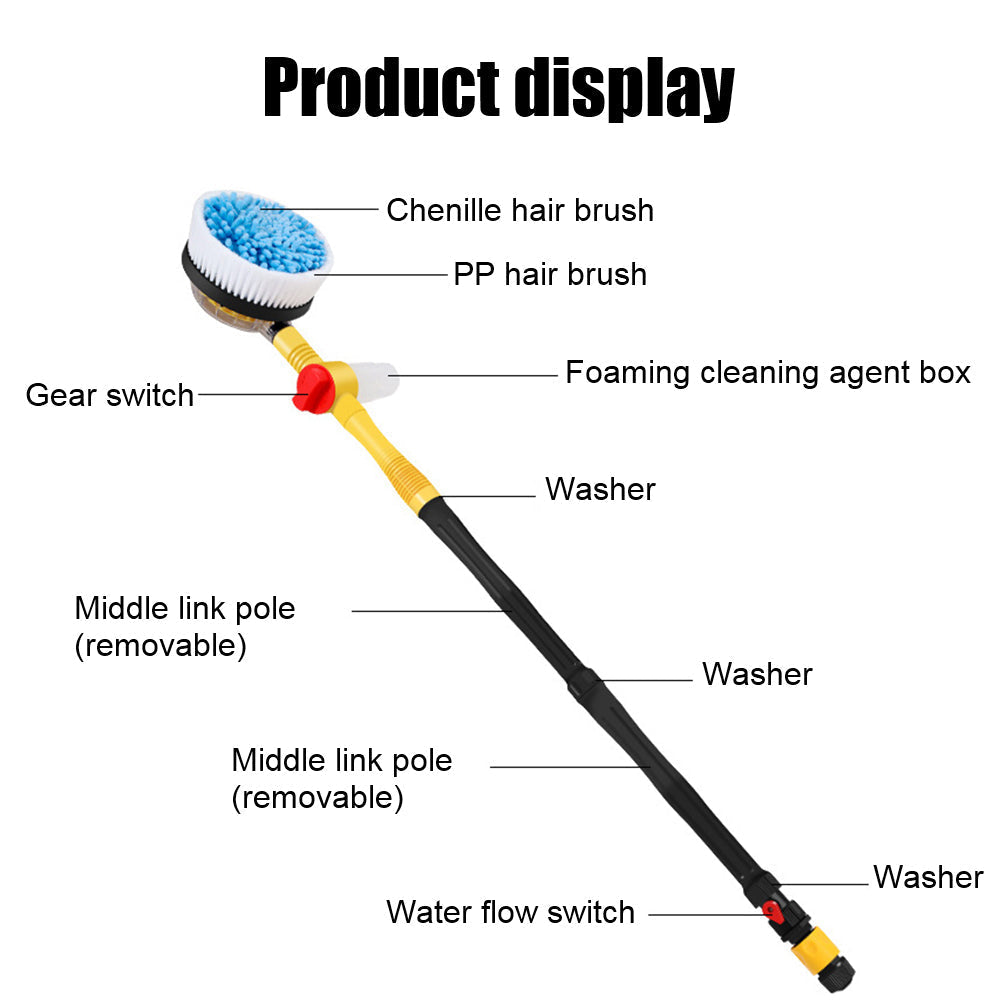 Open the tap, and the car brush may rotate 360 degrees on its own with the help of the water's propulsion.